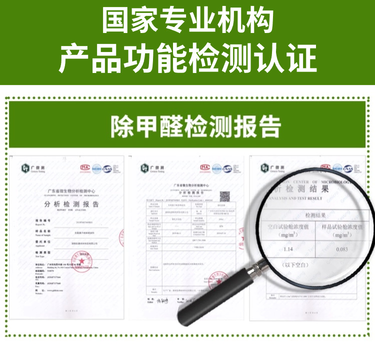 鈦唐納米負氧離子液專業(yè)機構(gòu)產(chǎn)品功能檢測報告附件:1:負氧離子濃度檢測報告:2:產(chǎn)品除甲醛檢測報告:3:產(chǎn)品抗菌檢測報告:...